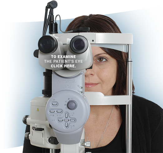 You are using a diffuse illumination to determine whether the listed conditions, if any, are present in the patient’s eye.